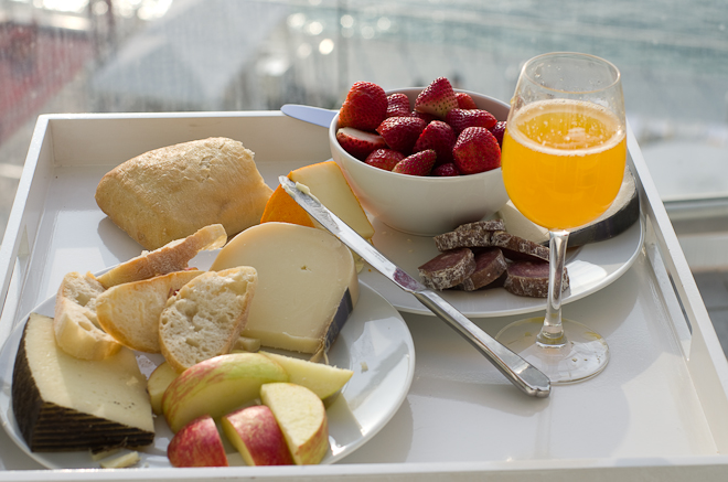 We did lunch on Ocean Avenue and then headed back to our hotel which was on the bay side of South Beach. Perfect afternoon filled with champagne cocktails for the girls, azulitas (8oz bud lights) for the boys and a fruit and cheese tray for all.