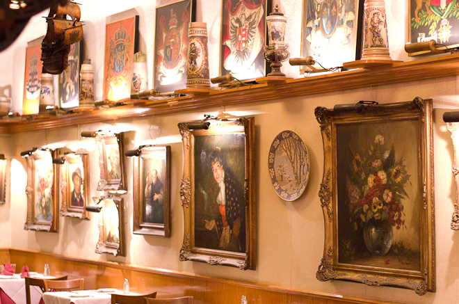 We had our first snow of the season on Saturday and our friend Stacy had planned accordingly by making a group reservation at Old Europe-- a German restaurant right up the street from us. Our neighborhood is full of restaurants and bars, but only Old Europe has been around for over 60 years. It's a little time capsule nestled in the midst of all new developments. And it appears that not much has changed since they opened!